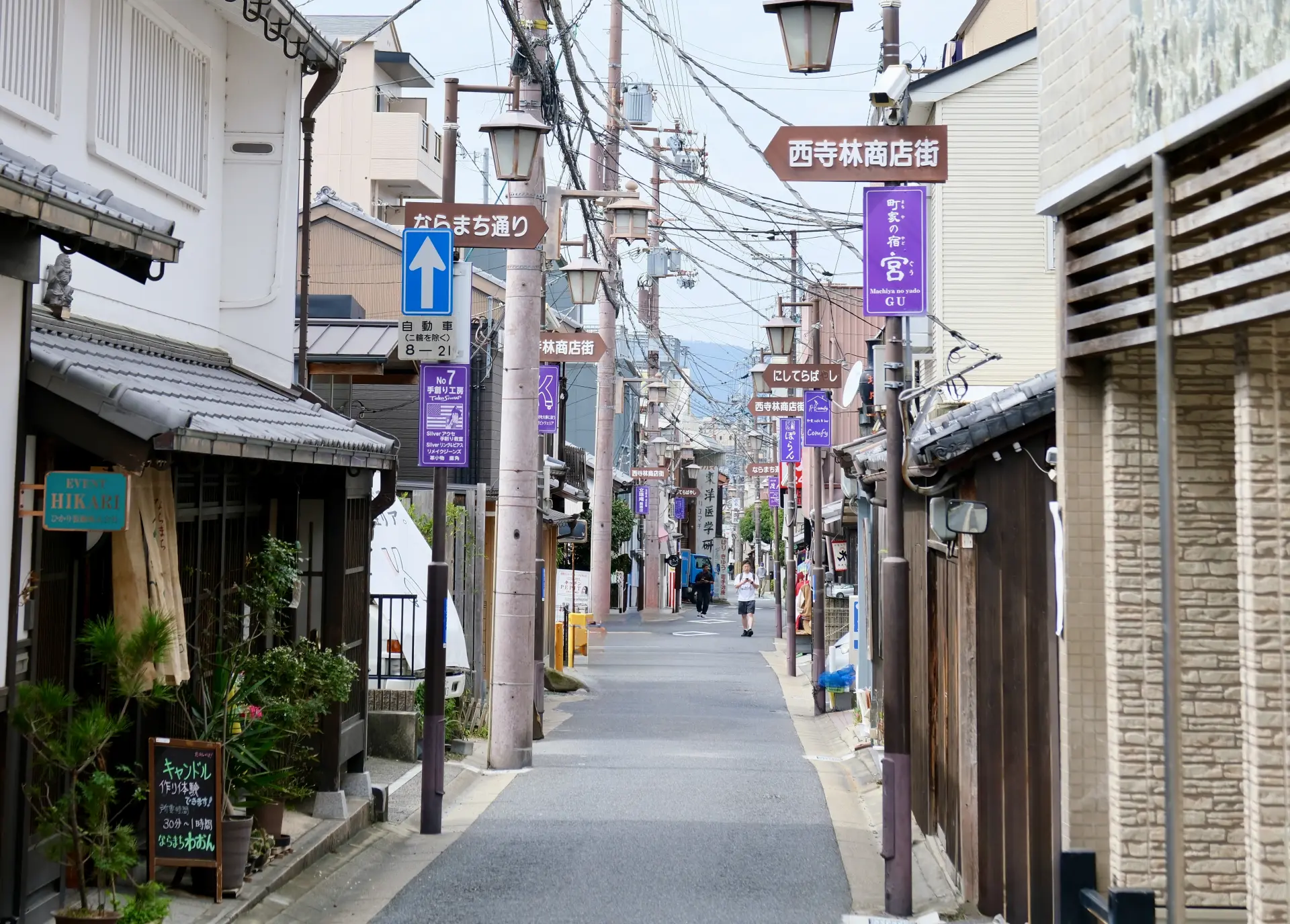 While Nara is best known for its grand temples and deer, Naramachi offers a quieter side of the city where tradition lives on. Once a merchant quarter during the Edo period, the district’s narrow alleys are lined with machiya townhouses featuring lattice façades and tiled roofs.