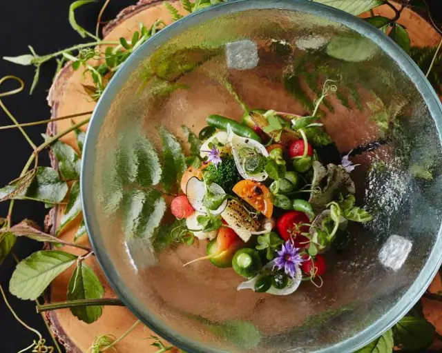 TENJIN Chef’s Table is led by executive chef Akira Taniguchi, who turns the open kitchen into his stage, delighting guests with his culinary artistry. Seasonality is at the forefront of TENJIN’s style, which draws from French cooking techniques. Some courses even utilize herbs and Kyo-yasai (Kyoto Prefecture’s heirloom vegetables) that are picked straight from the garden on hotel premises.